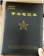 材質:黑色PU革,不銹鋼活頁夾采用壓印工藝印制“政治理論學習筆記本”、“八一五星”、單位三個要素封皮:21*27.2cm