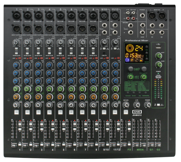 11、每路輸入/FX各單獨一個推子控制;左右主輸出,兩個推子獨立控制;兩編組輸出,兩個推子獨立控制;