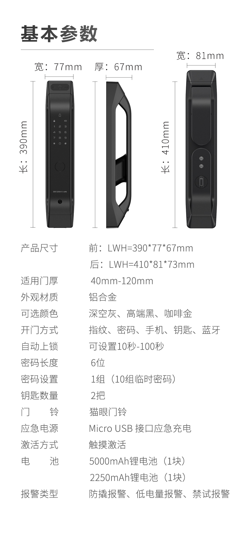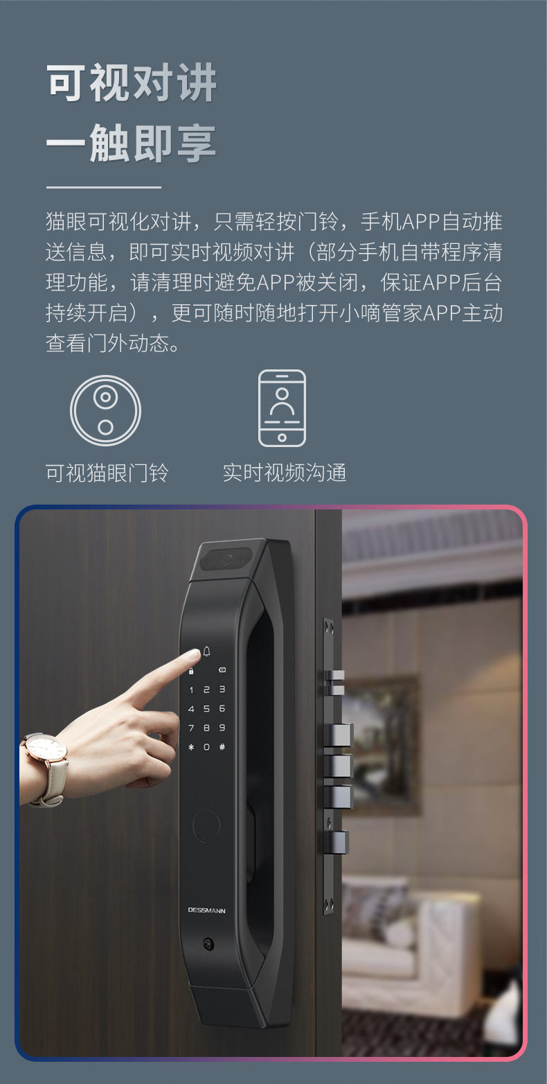 德施曼(DESSMANN)全自動智能鎖指紋鎖密碼鎖防盜門鎖 電子鎖智能門鎖門禁鎖 貓眼 免費安裝(Q5M)高端黑